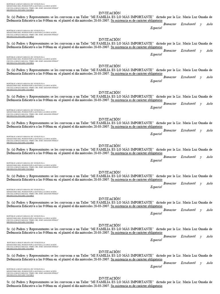 Defensorìa Educativa a las 9:00am en el plantel el día miércoles 28-03-2007. Su asistencia es de carácter obligatorio