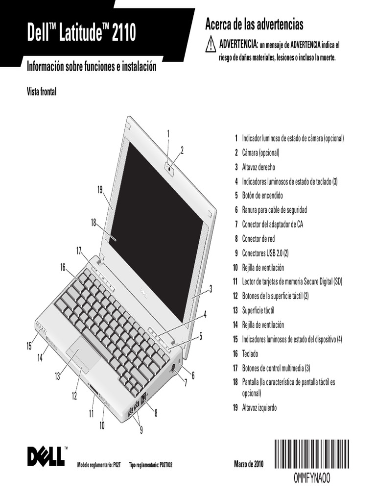 Dell™ Latitude™ 2110 ADVERTENCIA: un mensaje de ADVERTENCIA indica el