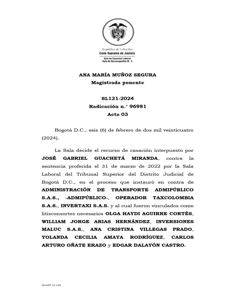 ordinario laboral seguido por JOSÉ GABRIEL GUACHETÁ MIRANDA