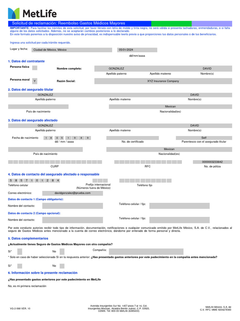 Solicitud de reclamación: Reembolso Gastos Médicos Mayores