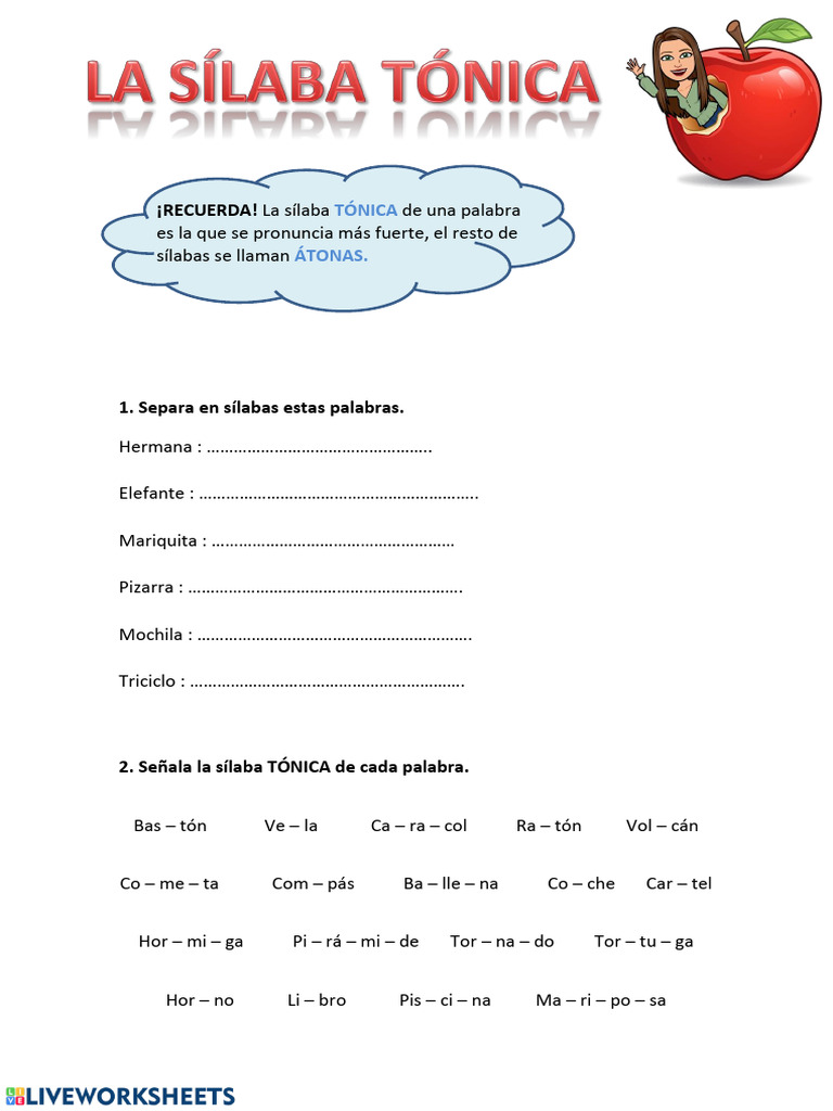 2. Señala la sílaba TÓNICA de cada palabra.