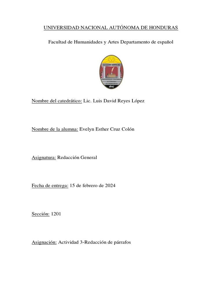 Asignación: Actividad 3-Redacción de párrafos