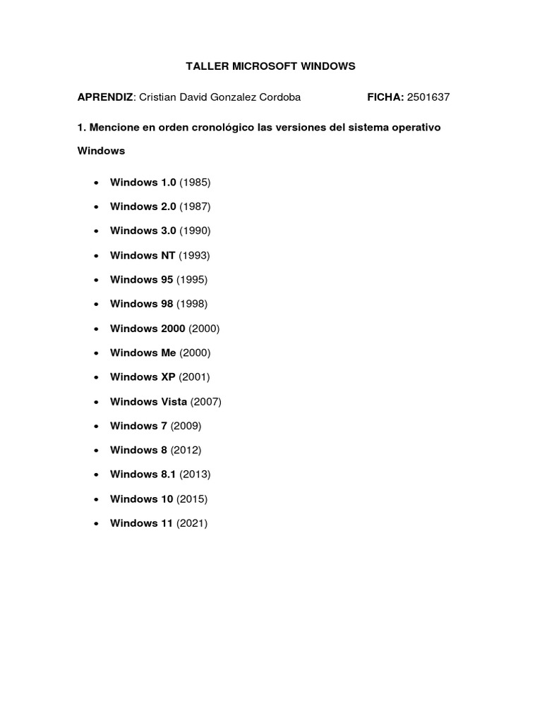 1. Mencione en orden cronológico las versiones del sistema operativo