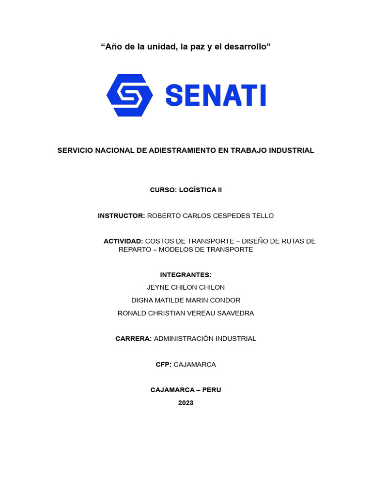 ACTIVIDAD: COSTOS DE TRANSPORTE – DISEÑO DE RUTAS DE
