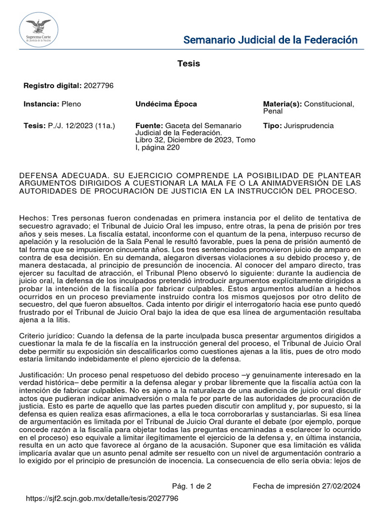 Tesis: P./J. 12/2023 (11a.) Fuente: Gaceta del Semanario Tipo: Jurisprudencia