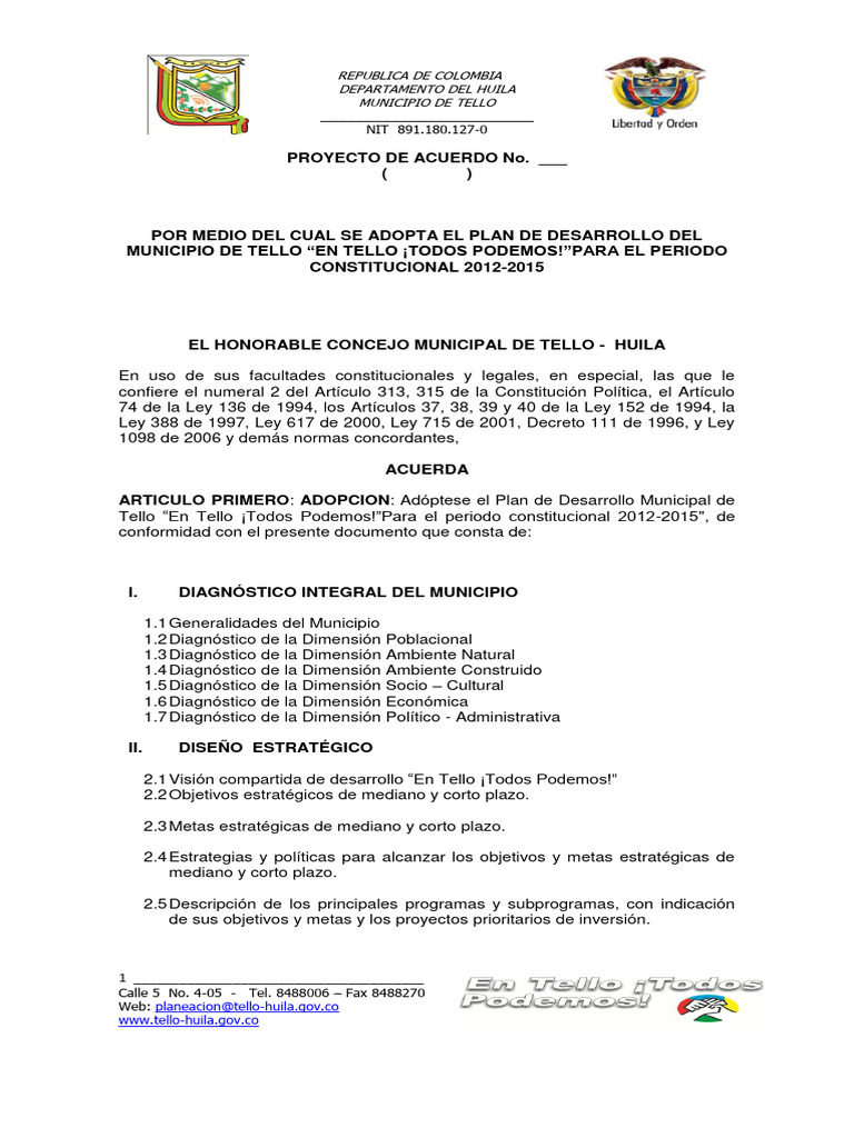 2012, al Plan de Desarrollo que apruebe el Concejo Municipal para el período constitucional 2012-