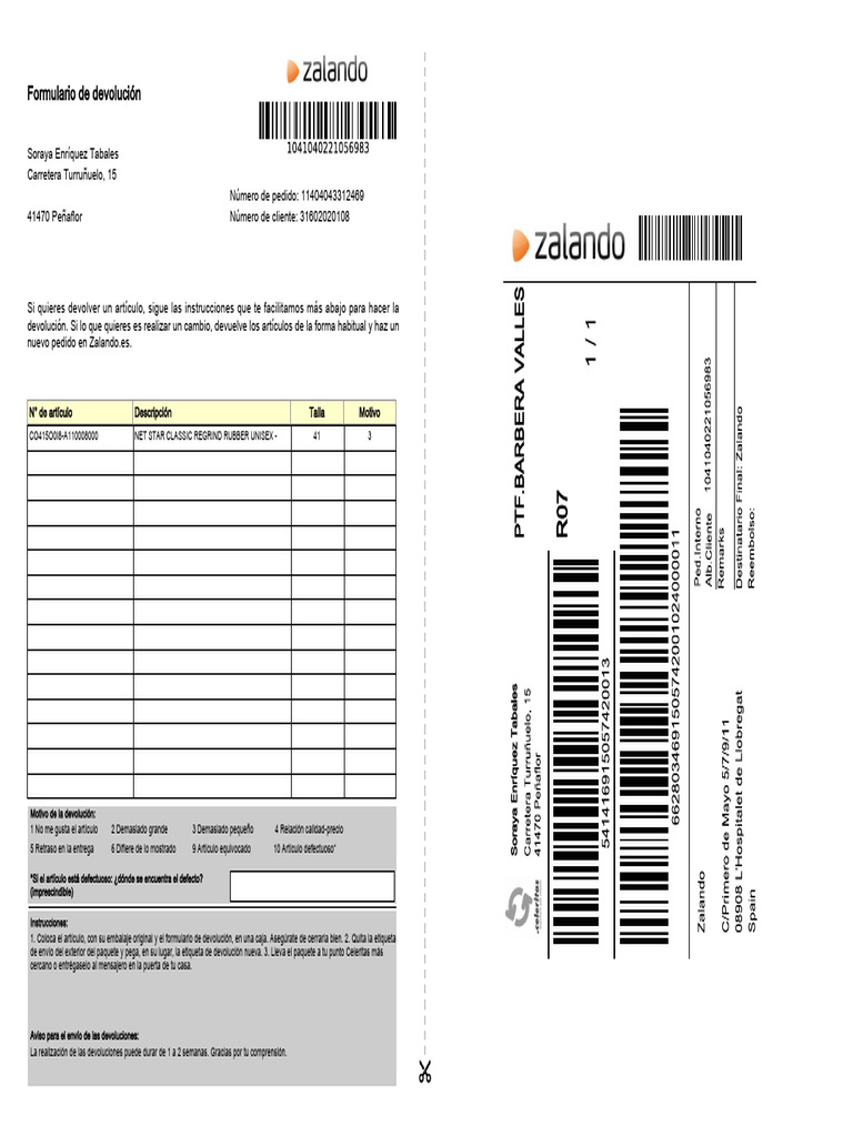 1. Coloca el artículo, con su embalaje original y el formulario de devolución, en una caja. Asegúrate de cerrarla bien. 2. Quita la etiqueta