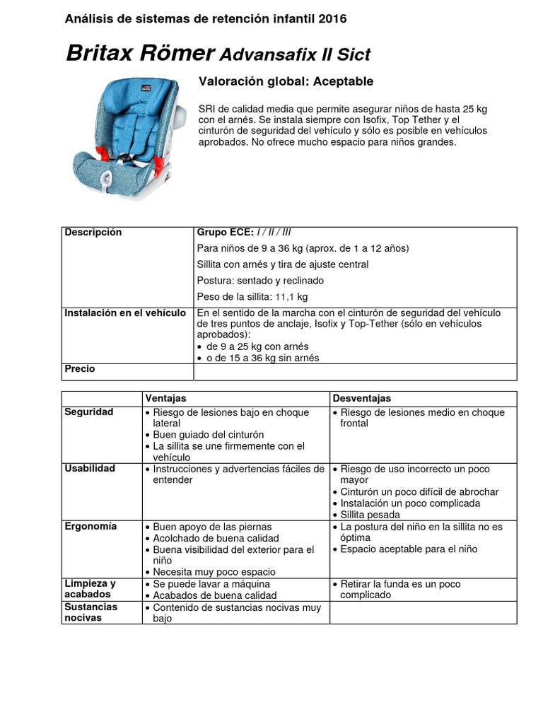 Análisis de sistemas de retención infantil 2016