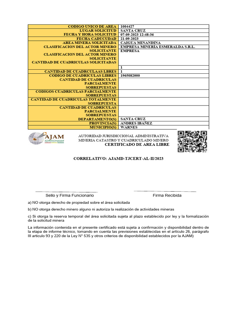 CERTIFICADO DE AREA LIBRE