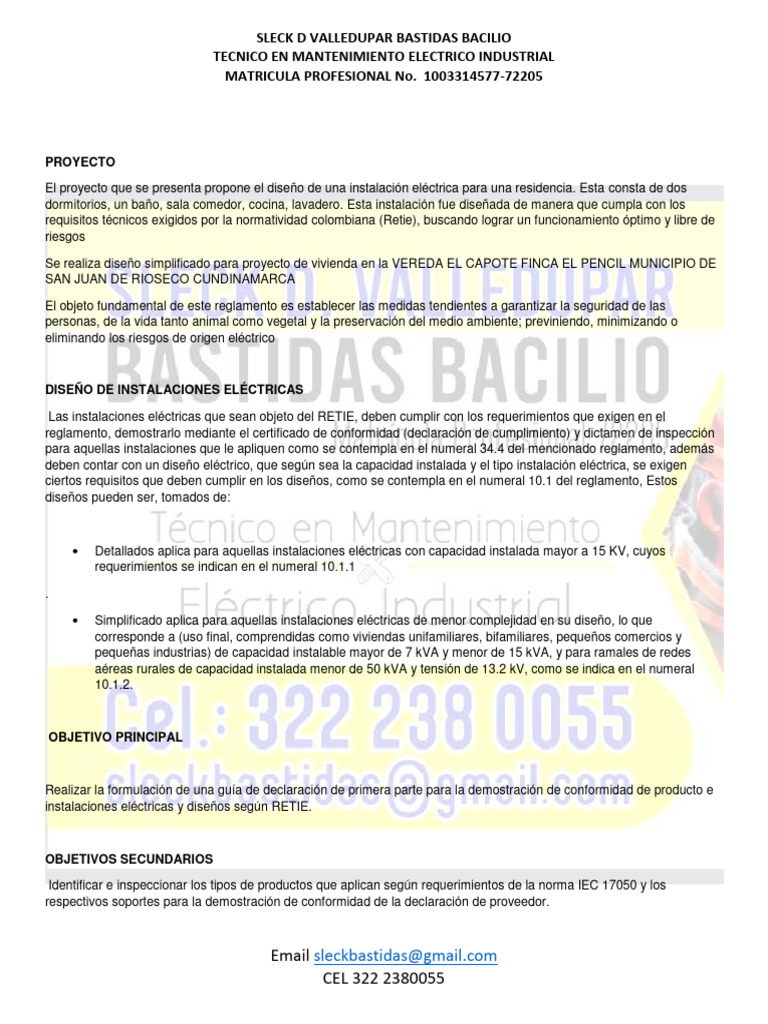 requisitos técnicos exigidos por la normatividad colombiana (Retie), buscando lograr un funcionamiento óptimo y libre de