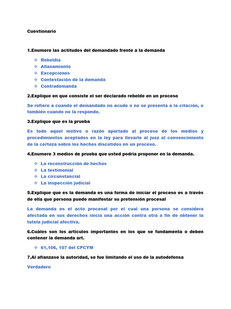 [Link] las actitudes del demandado frente a la demanda