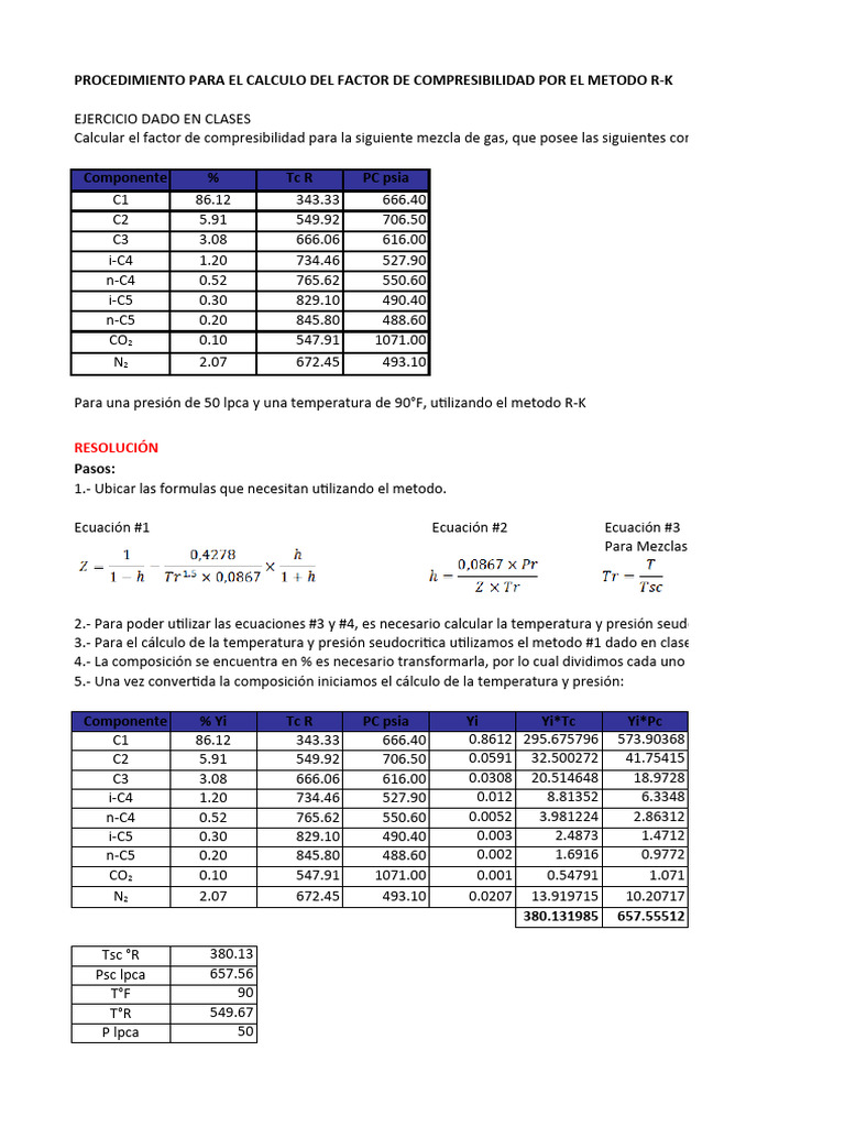 PROCEDIMIENTO PARA EL CALCULO DEL FACTOR DE COMPRESIBILIDAD POR EL METODO R-K