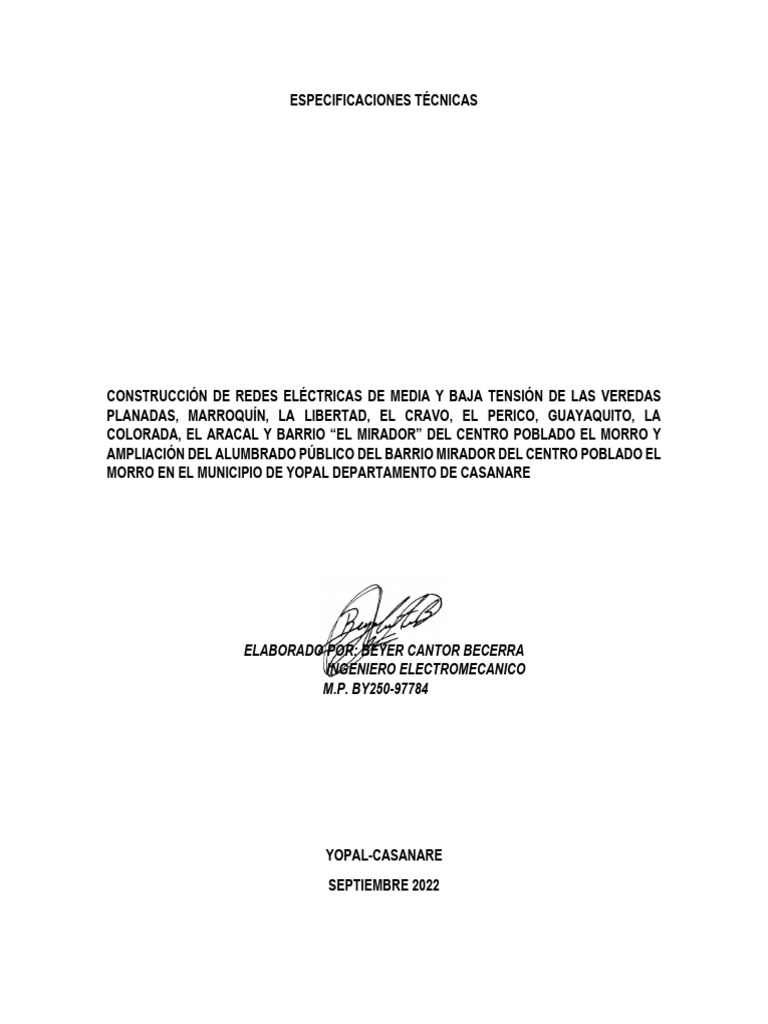 Especificaciones Redes Eléctricas Yopal