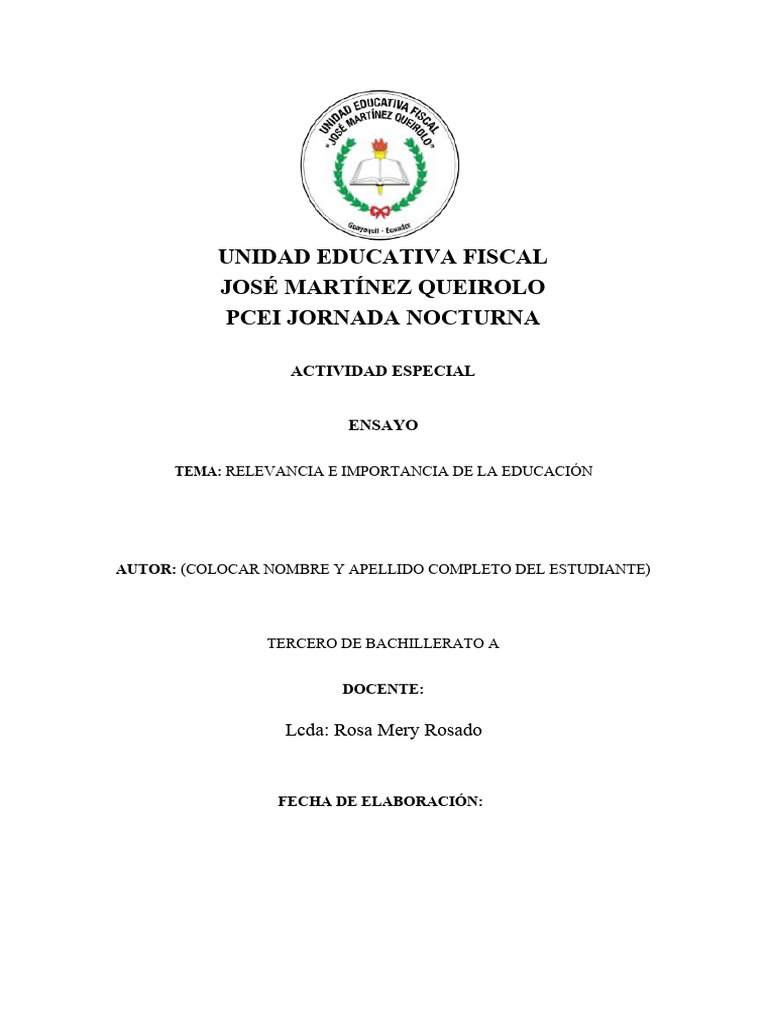 Entrega el ensayo con puntualidad (el viernes 8