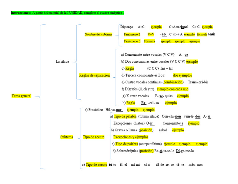 Instrucciones: A partir del material de la I UNIDAD, complete el cuadro sinóptico .