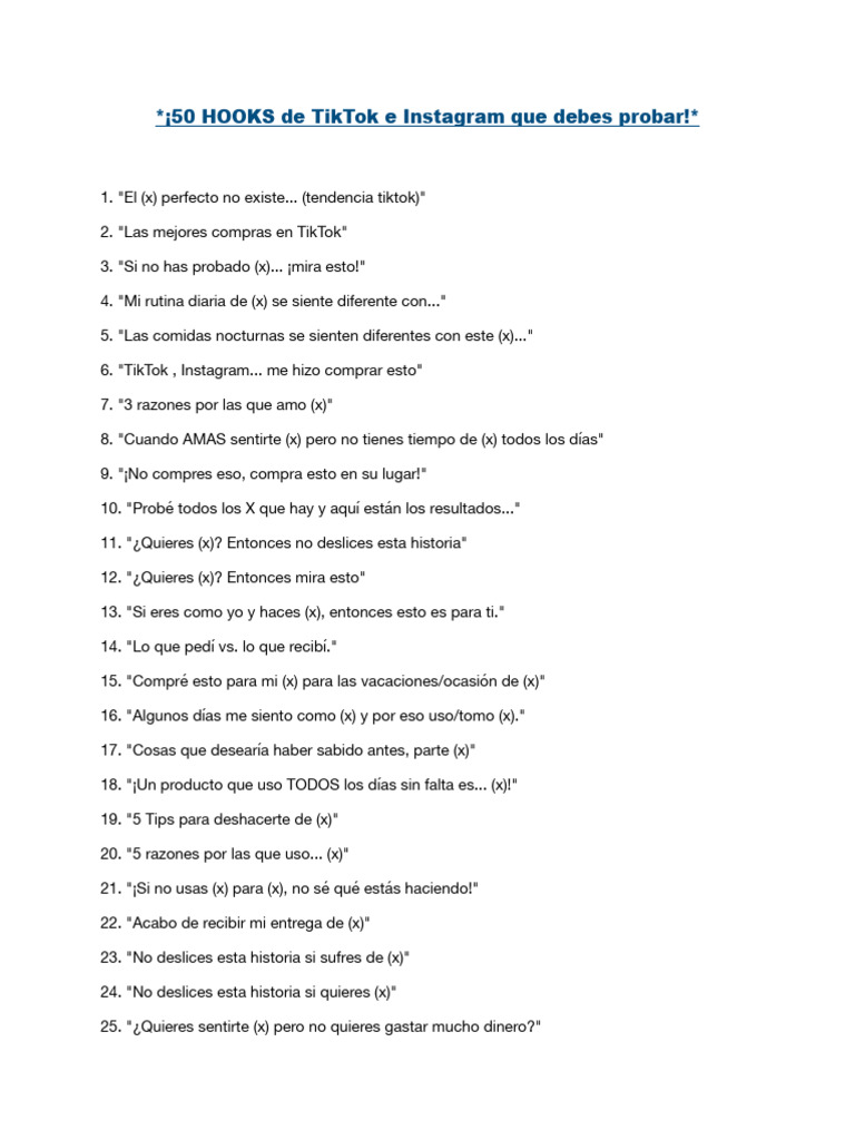 *¡50 HOOKS de TikTok e Instagram que debes probar!