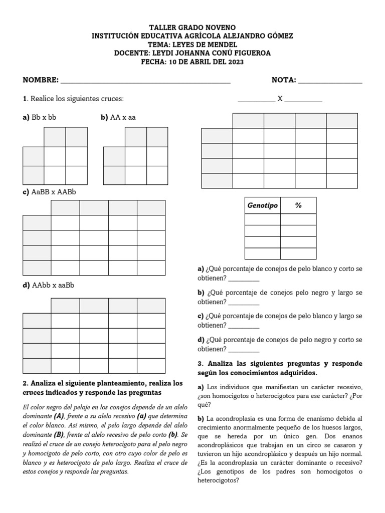 2. Analiza el siguiente planteamiento, realiza los a) Los individuos que manifiestan un carácter recesivo,