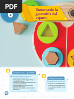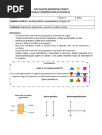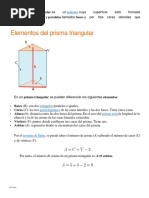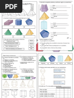 El documento proporciona instrucciones para contar las caras, aristas y vértices de un prisma triangular y registrar los resultados en una tabla. Se pide contar las características geométricas básicas de un prisma triangular y anotar los números encontrados en una tabla de tres columnas etiquetadas con "Caras", "Aristas" y "Vértices".