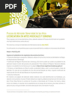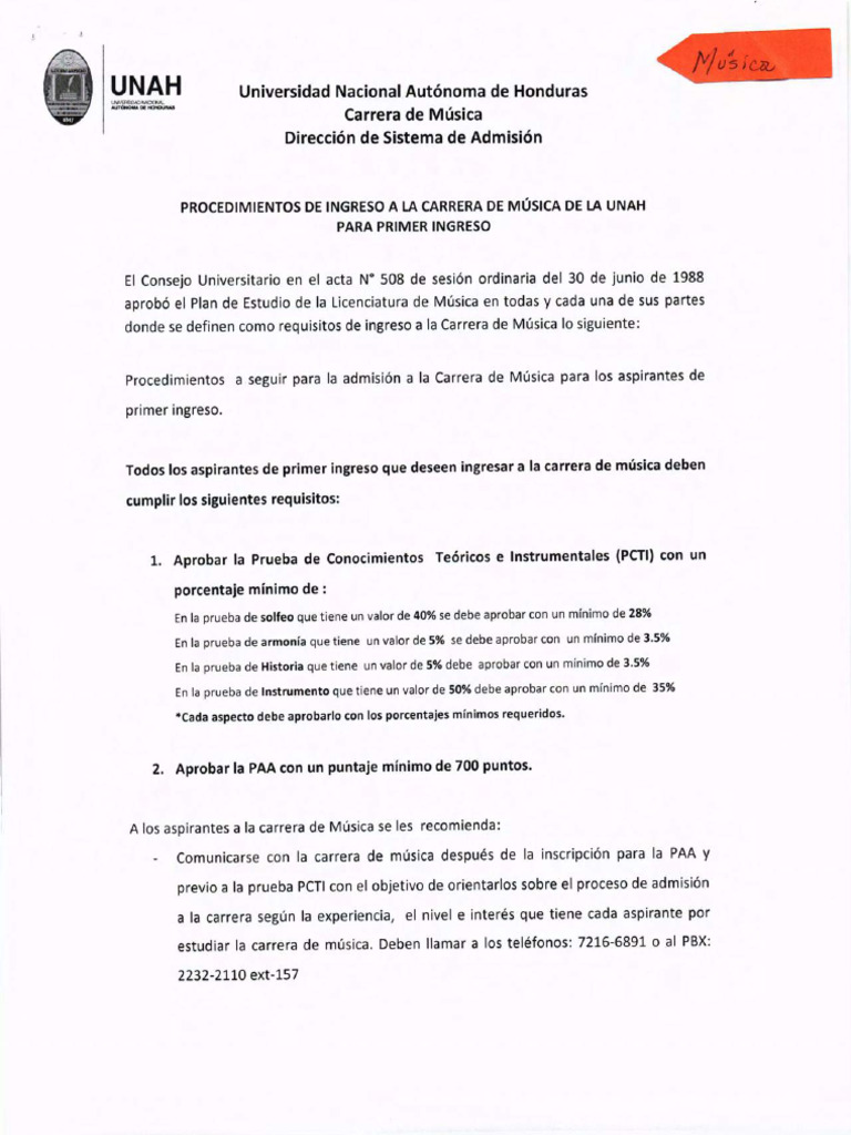 procedimientos a seguir para la admisión a la Carrera de Música para los aspirantes de