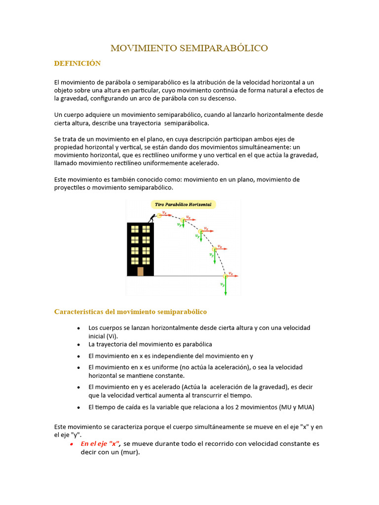 Caracteristicas del movimiento semiparabólico