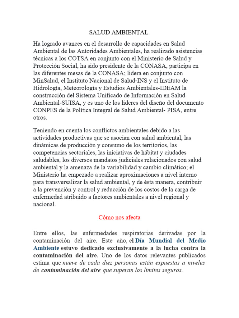 ambiental urbana, como la salud y la calidad de vida, tanto