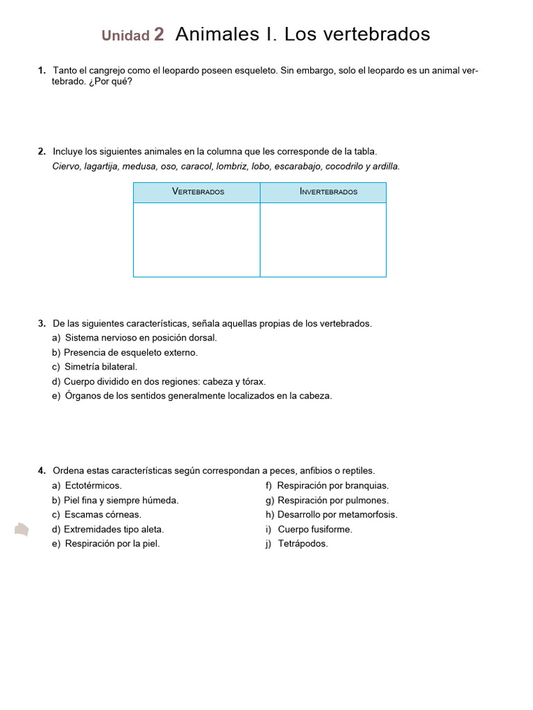 3. De las siguientes características, señala aquellas propias de los vertebrados.