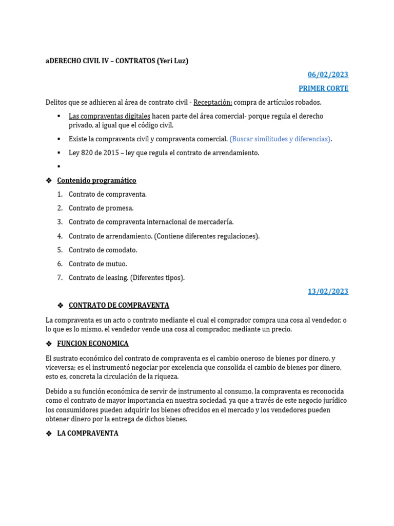 aDERECHO CIVIL IV – CONTRATOS (Yeri Luz)