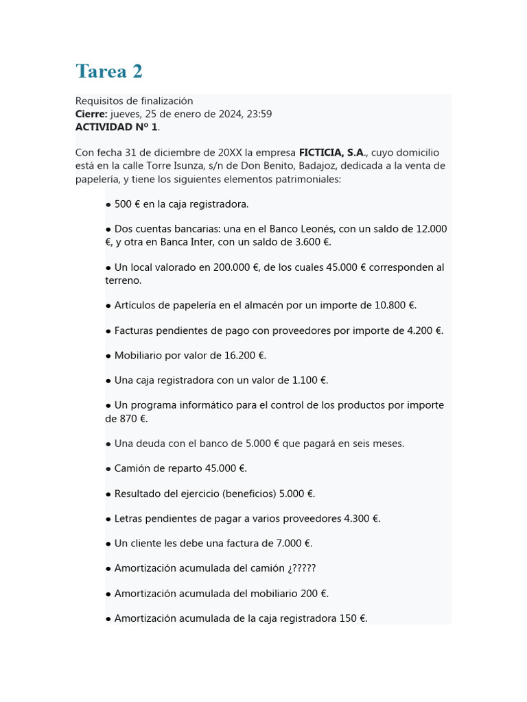 Con fecha 31 de diciembre de 20XX la empresa FICTICIA, S.A., cuyo domicilio
