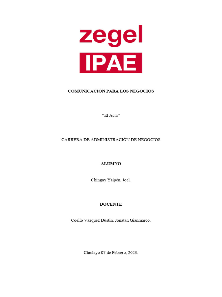 empresarial, educativo, entre otros. Algunas de las razones por las que el tema del acta