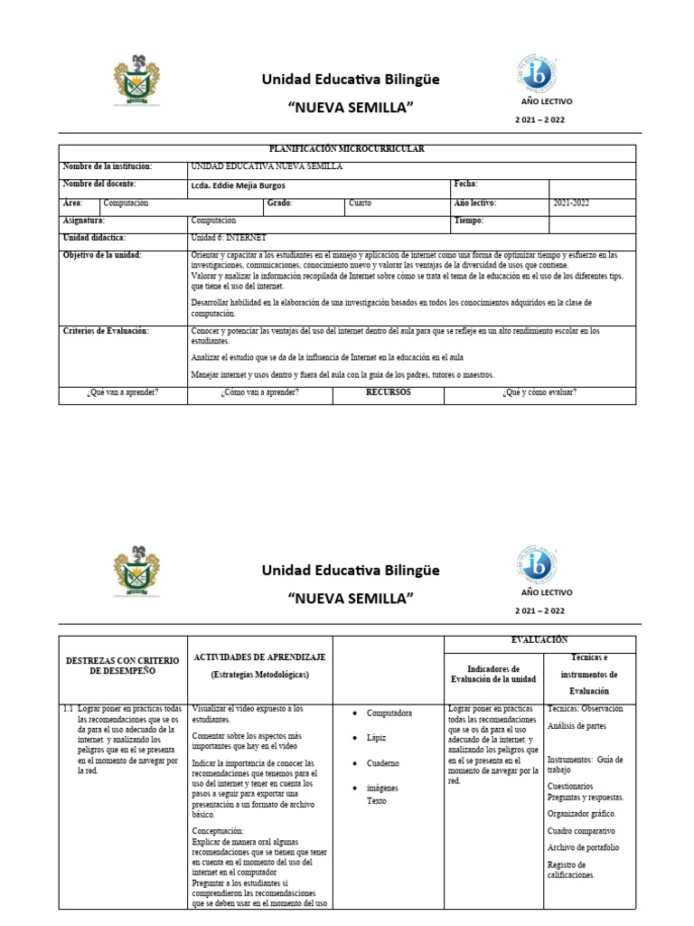 PLANIFICACIÓN MICROCURRICULAR
