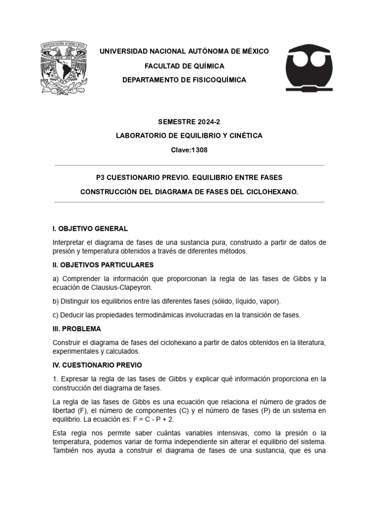 Departamento de Fisicoquímica. (2014). Practica 4 Diagrama de fases ciclohexano.
