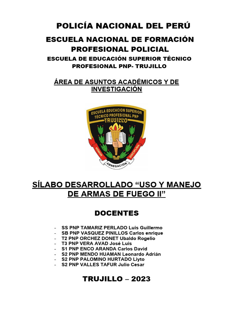 d. DOCENTES RESPONSABLES : SS PNP TAMARIZ PERLADO Luis Guillermo