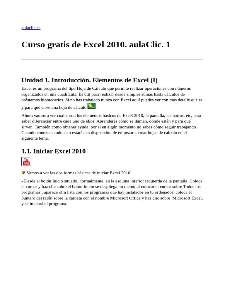 Curso gratis de Excel 2010. aulaClic. 1