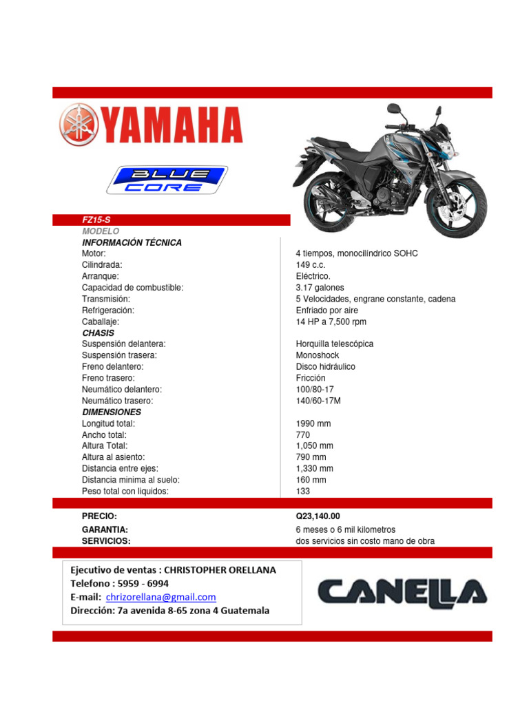 Caballaje: 14 HP a 7,500 rpm