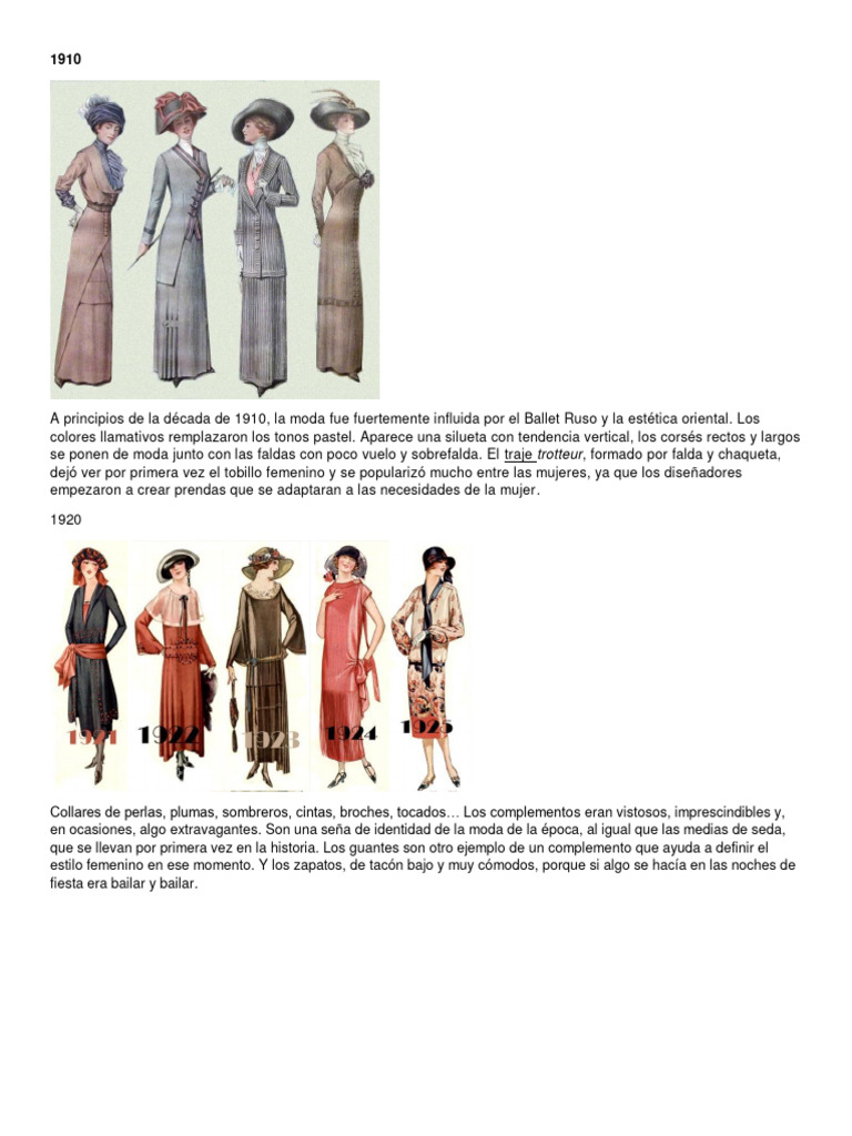 A principios de la década de 1910, la moda fue fuertemente influida por el Ballet Ruso y la estética oriental. Los