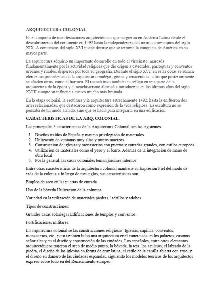 CARACTERISTICAS DE LA ARQ. COLONIAL.