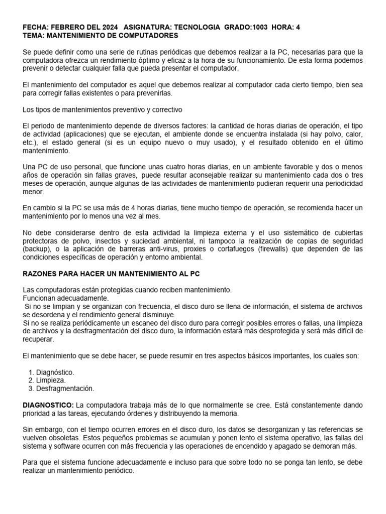 FECHA: FEBRERO DEL 2024 ASIGNATURA: TECNOLOGIA GRADO:1003 HORA: 4