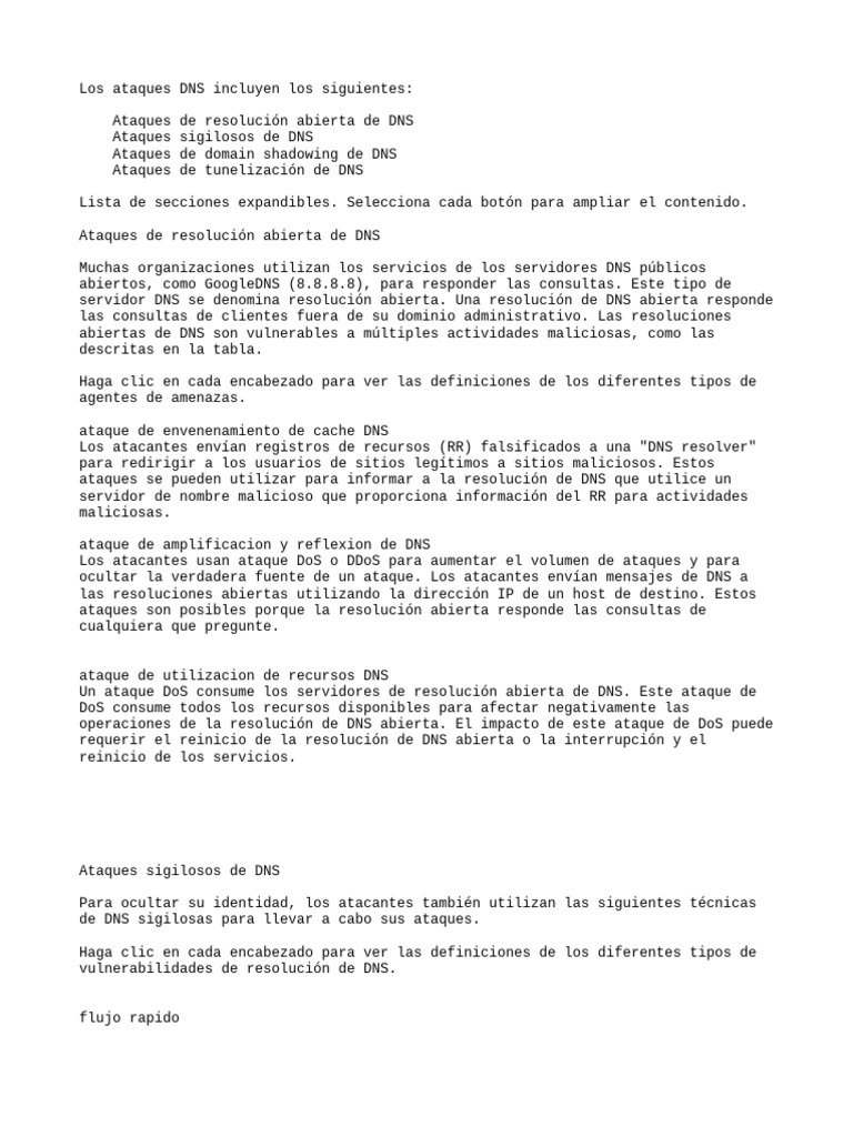 Los ataques DNS incluyen los siguientes: