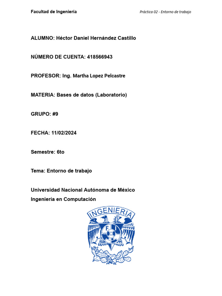 Facultad de Ingeniería Práctica 02 - Entorno de trabajo