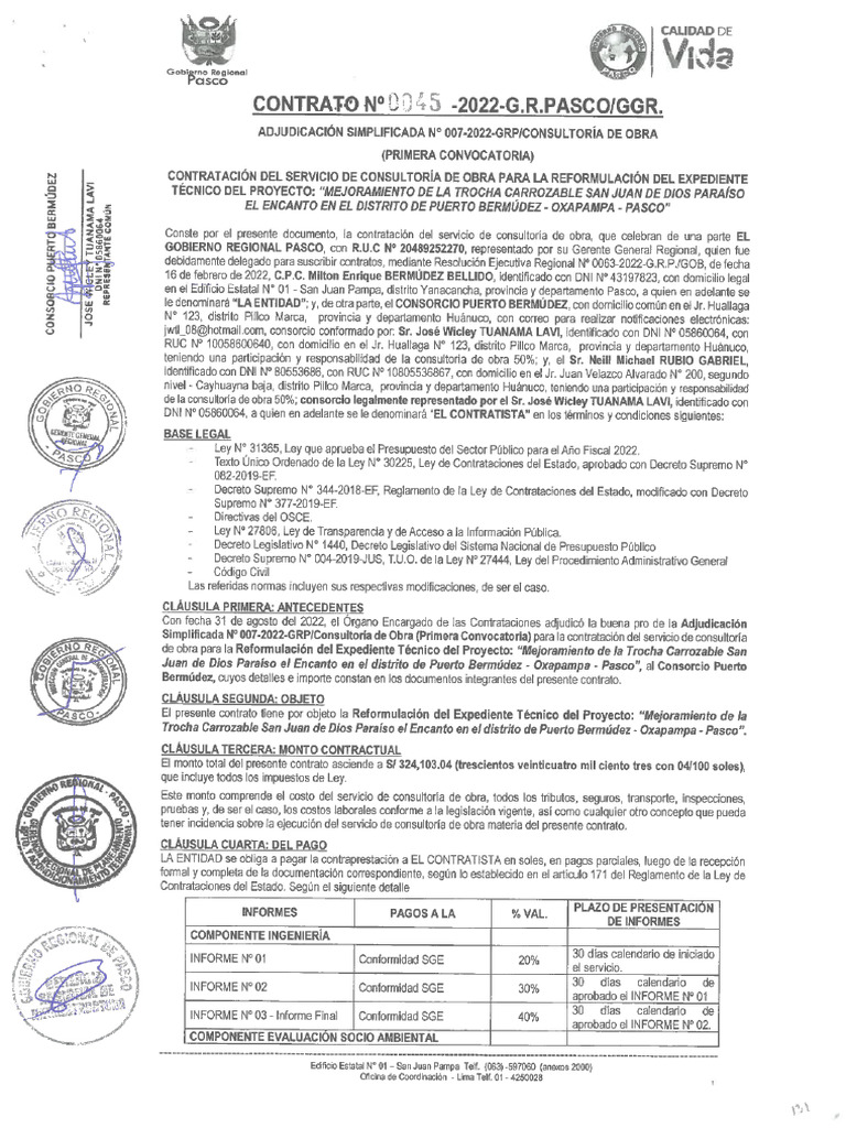 CONTRATO N°! 45 -2022-G.R.PASCO/GGR.