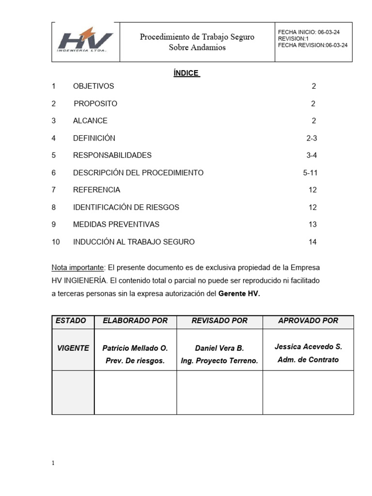 Este procedimiento es aplicable a todo el personal de HV INGIENERÍA LTDA.
