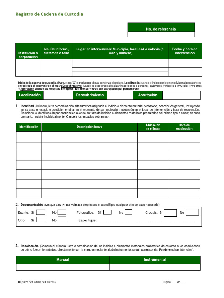 cuantas hojas sean necesarias. Cancele los espacios sobrantes después de que se haya cumplido con el destino final del indicio o
