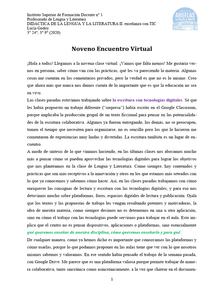 ¡Hola a todxs! Llegamos a la novena clase virtual. ¡Vamos que falta menos! Me gustaría ver-