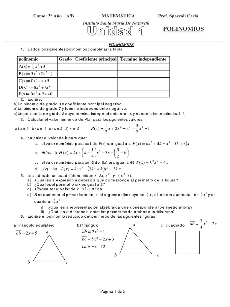 Curso: 3° Año A/B MATEMÁTICA Prof. Spazzali Carla.