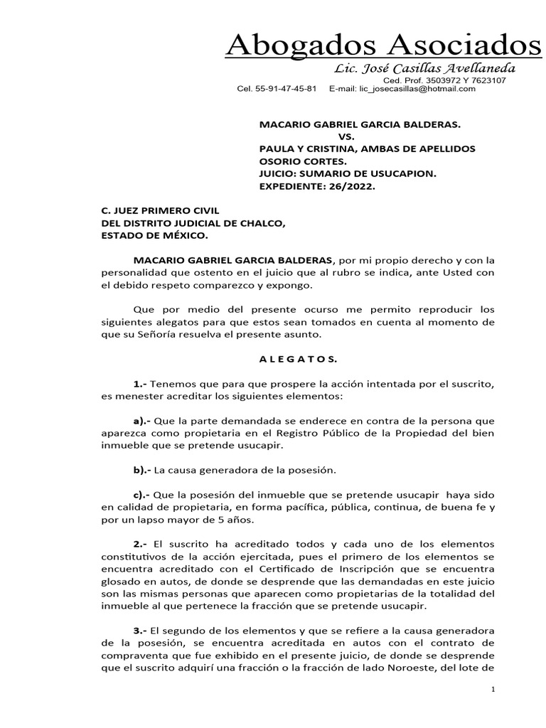 MACARIO GABRIEL GARCIA BALDERAS, por mi propio derecho y con la