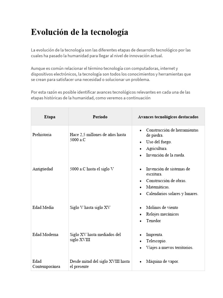 La evolución de la tecnología son las diferentes etapas de desarrollo tecnológico por las
