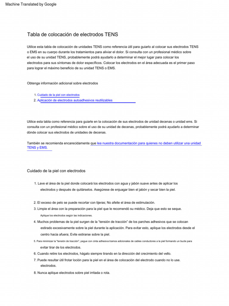 1. Limpie y seque bien la piel en el área prescrita con agua y jabón antes de aplicar los electrodos.