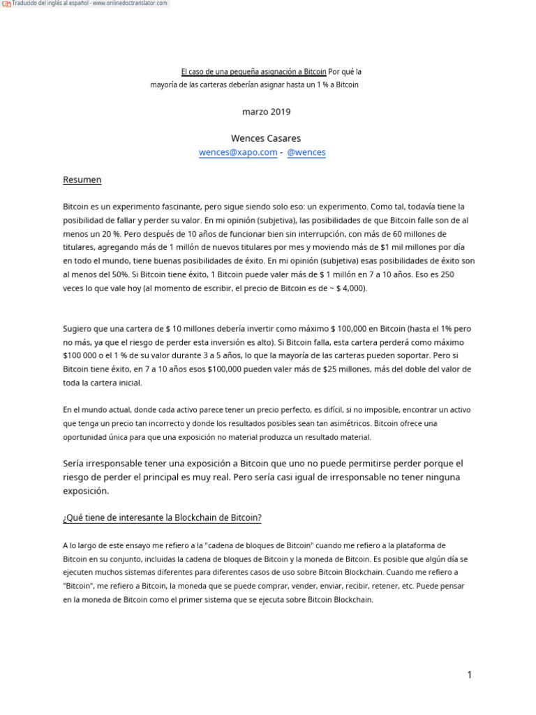 Este ensayo se centra en defender una pequeña asignación a Bitcoin y, por lo tanto, se centra en la posible