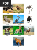 Este documento presenta una lista de animales ordenados alfabéticamente desde Abeja hasta Zorro, incluyendo animales comunes como gato, león, mono y ratón, así como animales menos comunes como chivo, ñandú, queezal, urraca, xifo y wapiti.