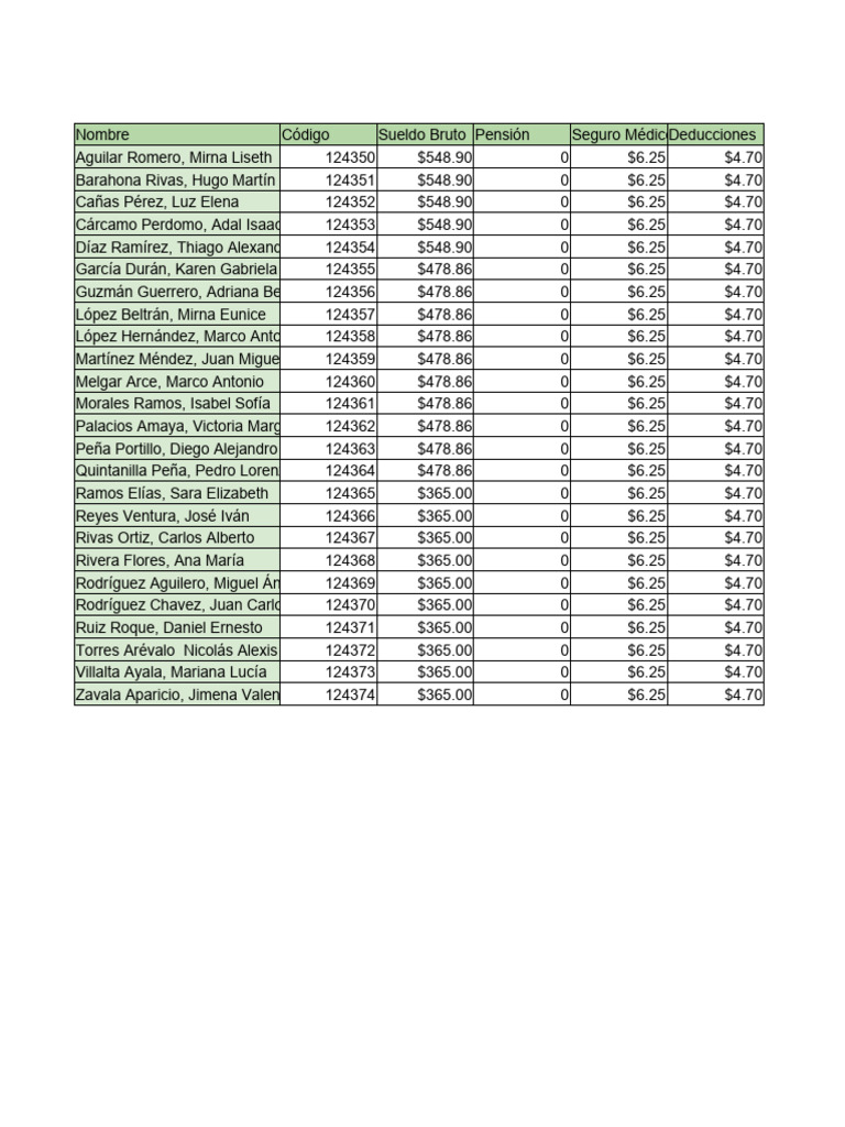 Nombre Código Sueldo Bruto Pensión Seguro MédicoDeducciones